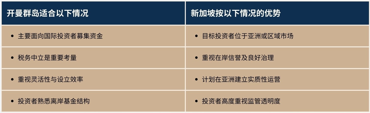 在开曼群岛与新加坡之间并不存在“一体适用”的答案。最合适的基金注册地应根据基金目标、投资者结构及长期发展策略综合判断。